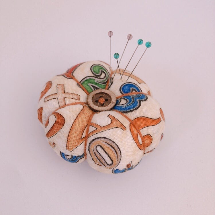 直径約7㎝×高さ2.5㎝のピンクッション。