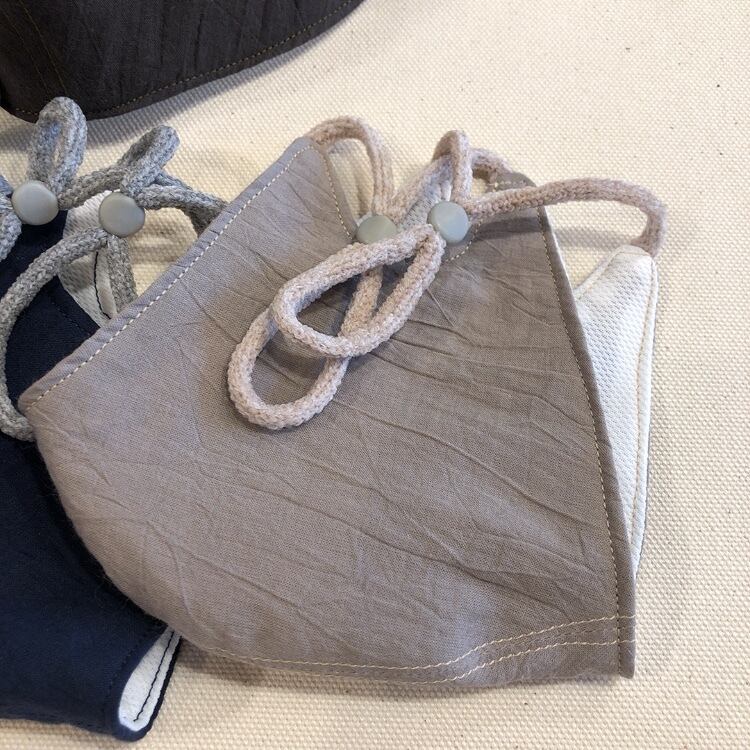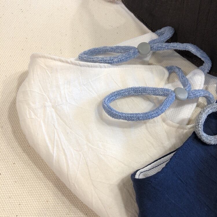 耳に優しい丸ゴム使用。ゴムストッパーでゴムの長さを調整できます。マスクと顔の隙間は極力小さく安心の装着感です。